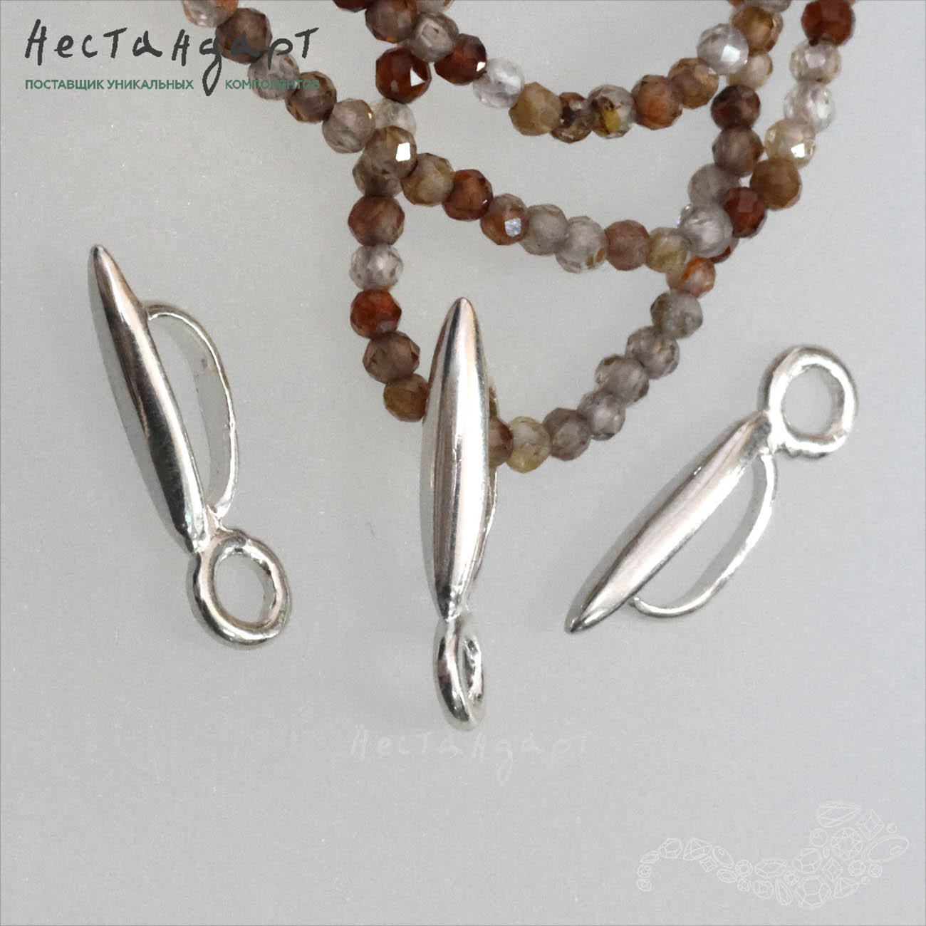 Простой гладкий ювелирный бейл с паяной петлей. Универсальный дизайн, приятная каплевидная форма, драгоценное серебро 925. Подходит для лент, цепочек и шнуров. Материал покрытия гипоаллергенный, идеален для людей с чувствительной кожей.