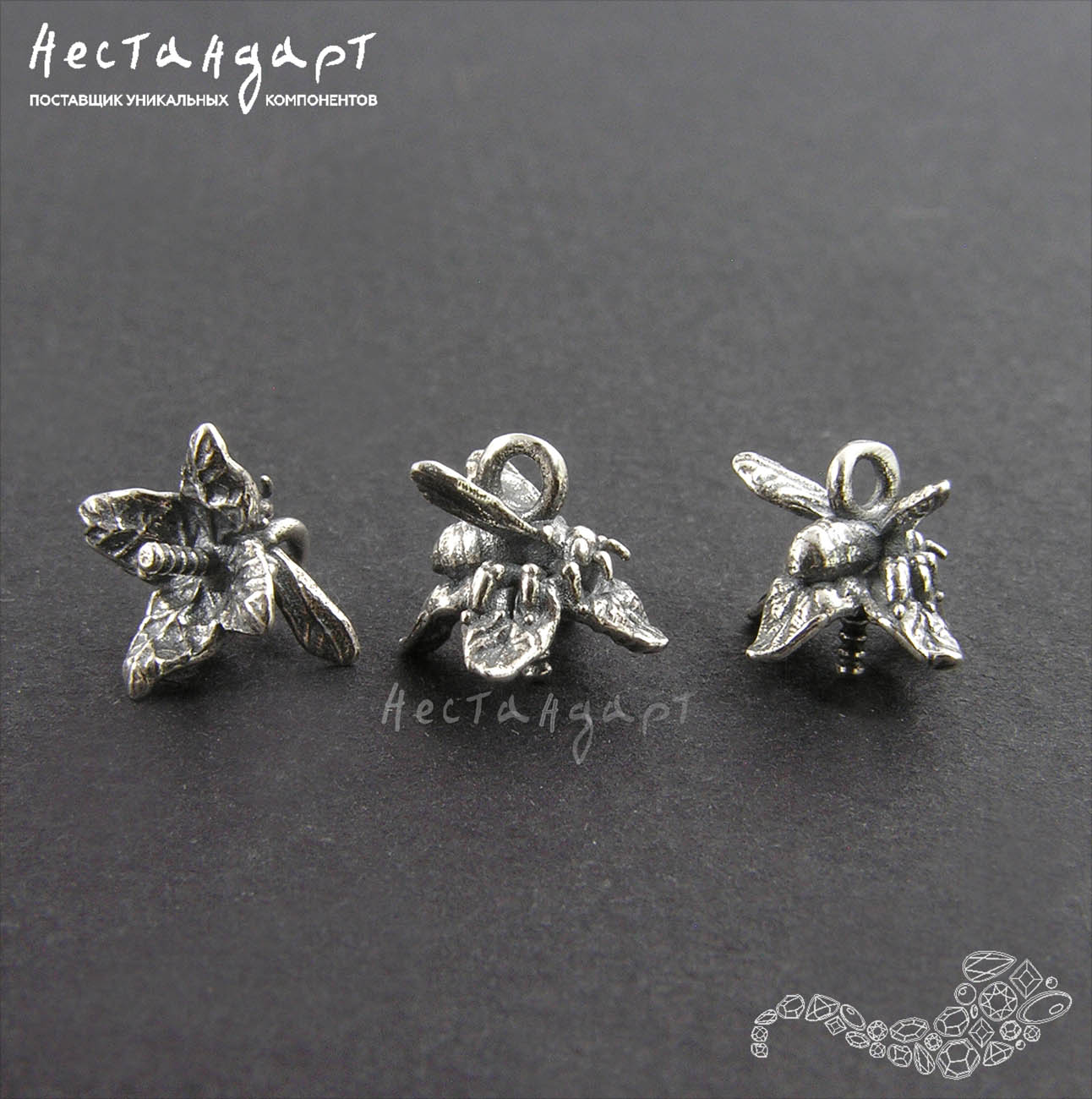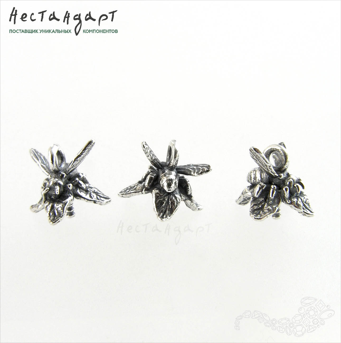 Очаровательный концевик пустышка продолжение ботанической авторской коллекции из гипоаллергенного стерлингового серебра. Навершие украшено крошечной пчелкой, у которой можно рассмотреть усики и милые лапки и даже сеточку прожилок на крылышках. Детализированные лепестки изогнуты, что создает дополнительный объем фурнитуре и зрительно увеличивает детализацию, за счет светотени и подчеркнутого патиной рельефа. Внутренний диаметр чаши 7 мм. Размер штифта 3х0,9 мм. оборудован резьбой для максимально надежного сцепления. Петля для монтажа концевика паяная ок 1,5 мм.