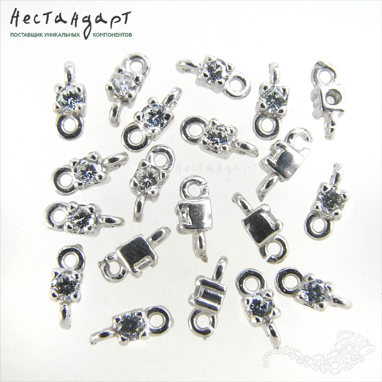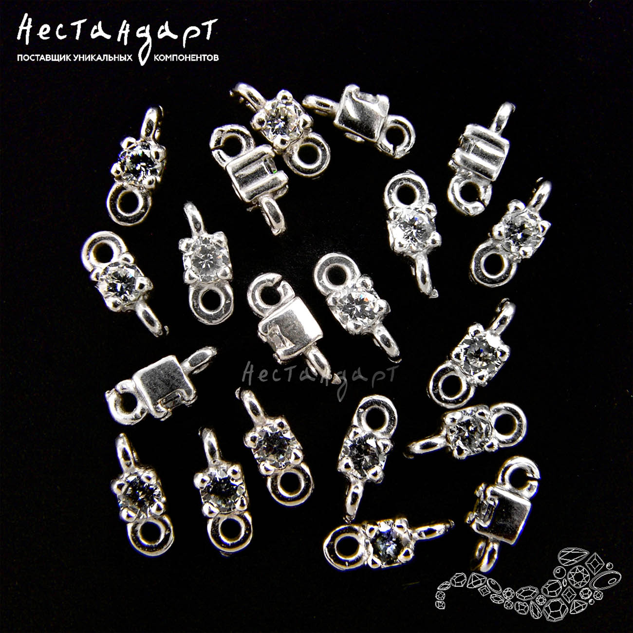 украшен сверкающим фианитом (диаметр 3 мм). Коннектор имеет две петли развернутые относительно друг друга на 90 градусов (внутренний диаметр 1,5 мм). Последовательно соединяя коннекторы можно собрать оригинальную цепь для браслета или бус.