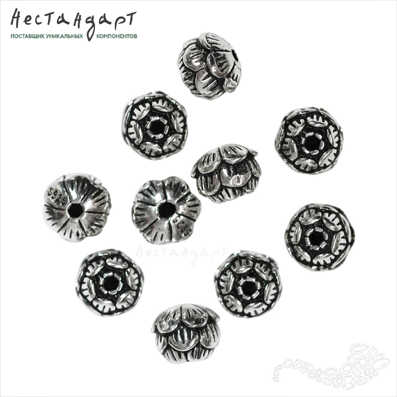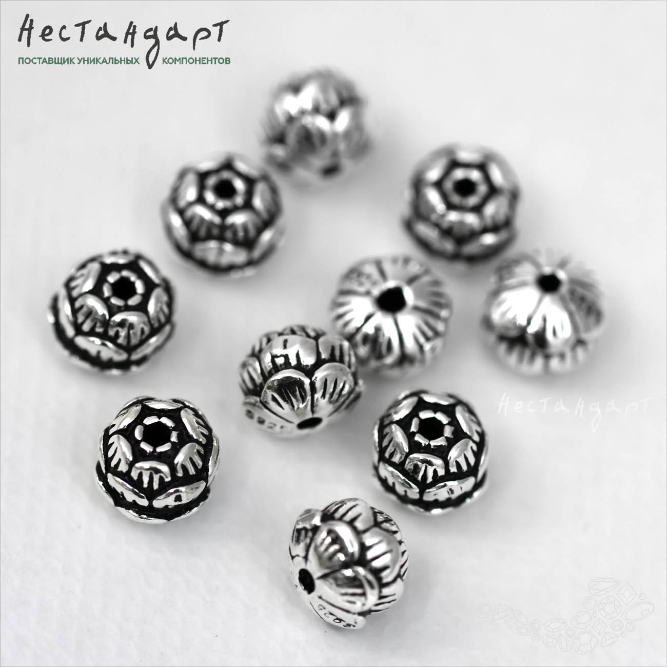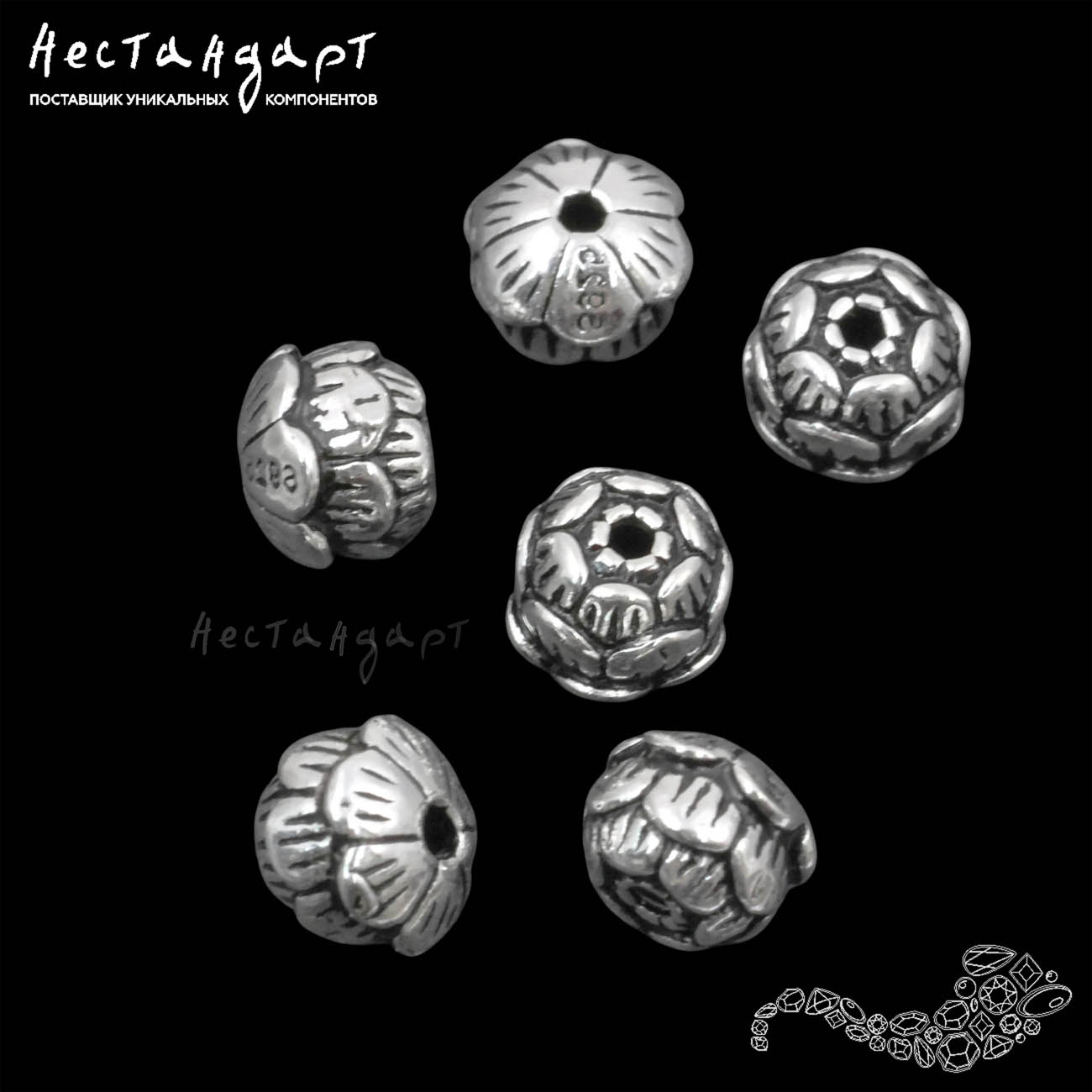 Литая бусина, объемная с подробной детализацией, выполненная из 925 стерлингового серебра в виде распускающегося лотоса. Цветок идеально смотрится в серьгах, в бусах. Тщательная прорисовка оттенена деликатной патиной придающей цветку винтажный вид и визуальный объем. Гипоаллергенный металл, подходит для чувствительной кожи.