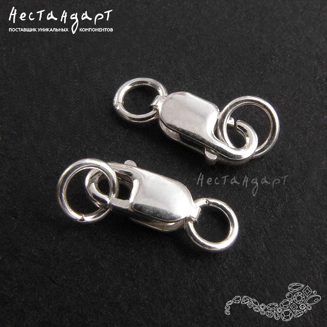 Замок-лобстер Sterling Silver с кольцами (10x3,8 мм)