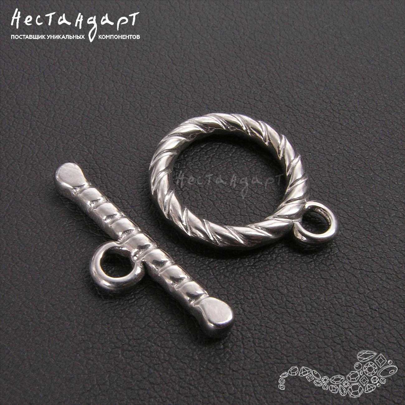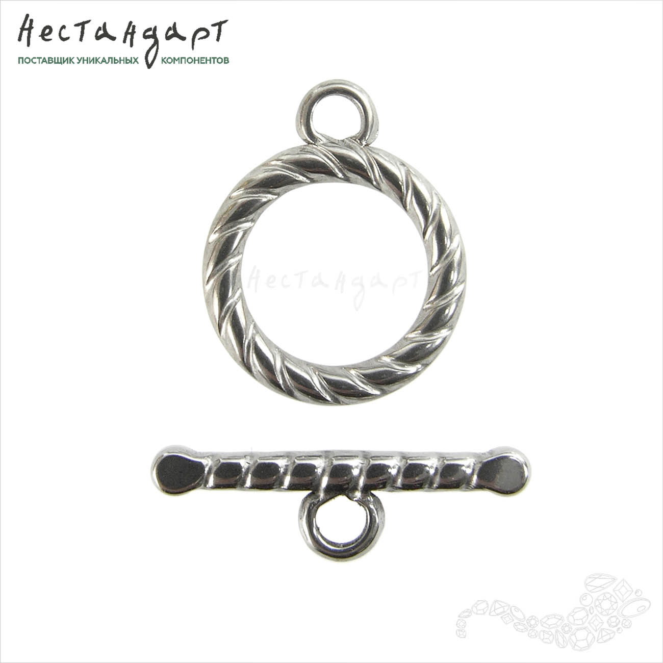 Замок-тогл Twisted Antico Silver 15 мм