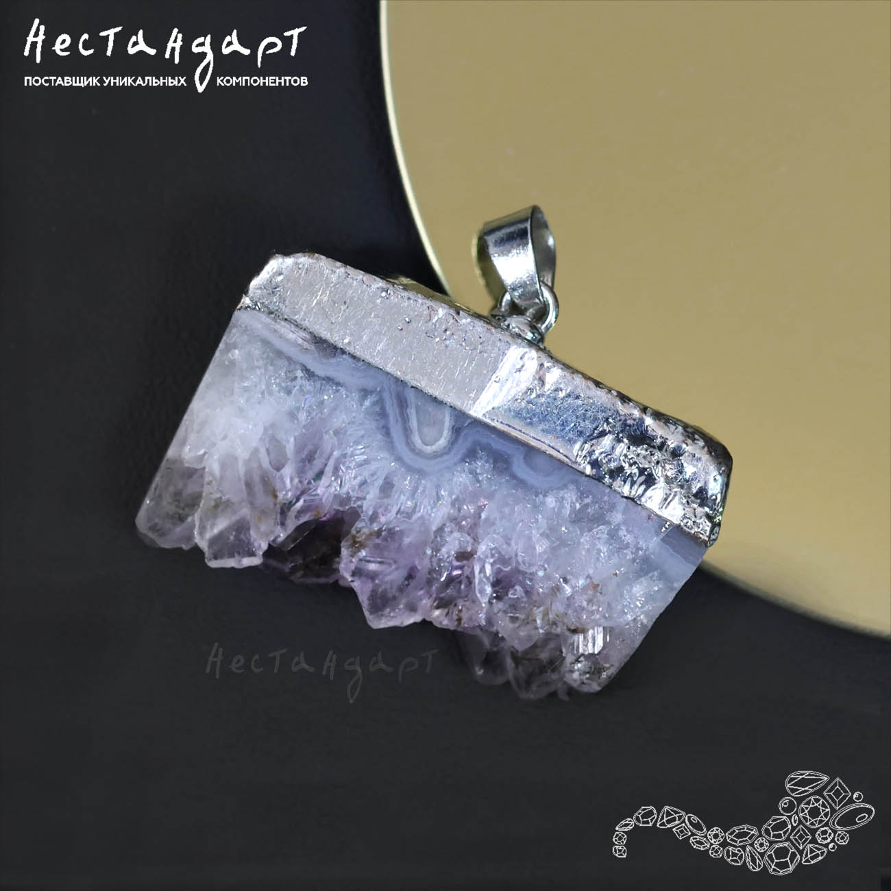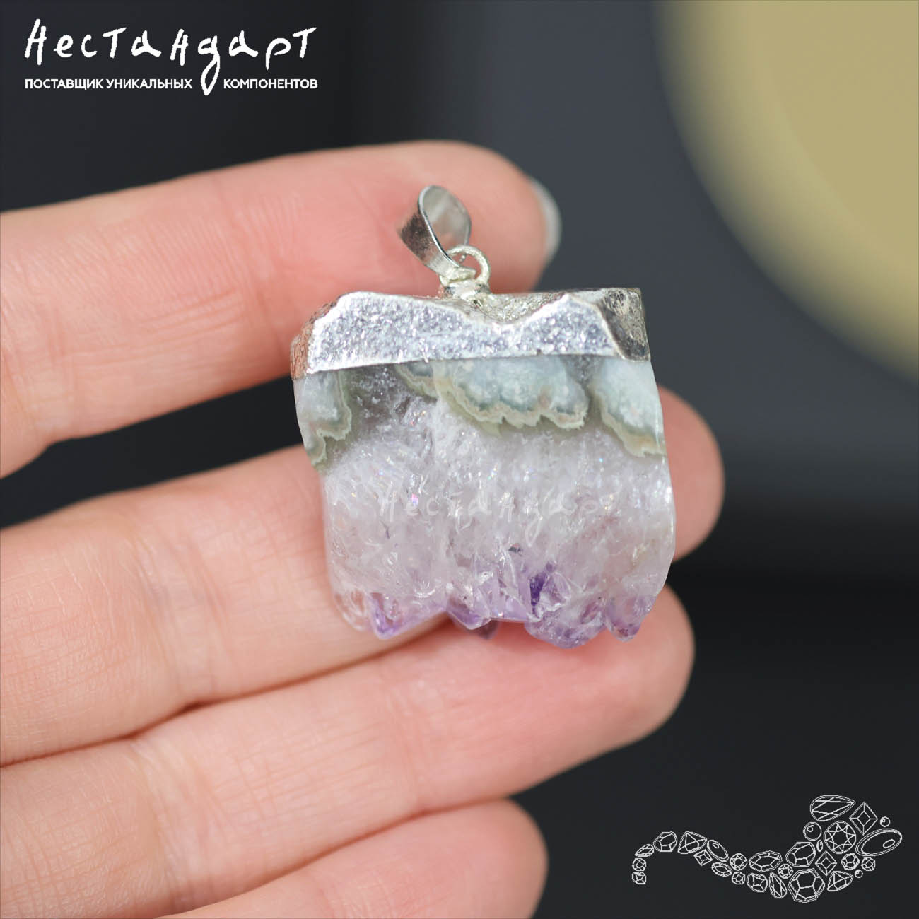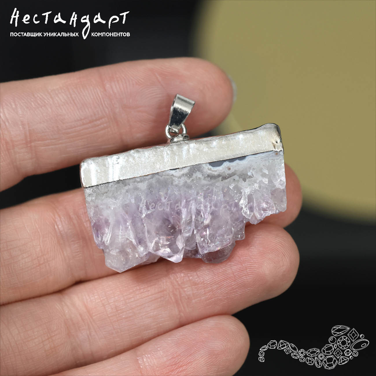 Подвеска из спила аметистовой друзы 28-42 мм